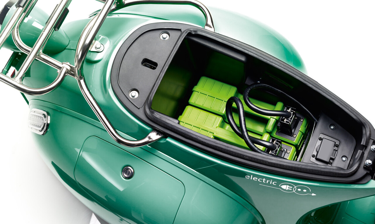 Una batería individual pesa 10 kg y puede extraerse fácilmente del compartimento de baterías con cerradura. La batería se puede cargar en cualquier toma de corriente estándar con el cargador suministrado.
